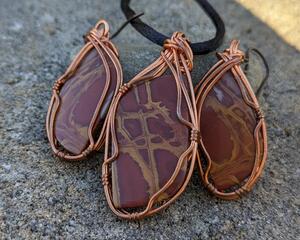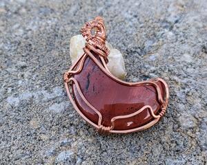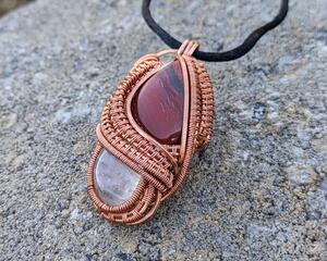 Red Jasper and Rainbow Moonstone copper wire woven pendant