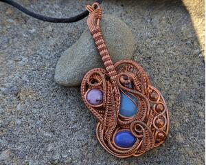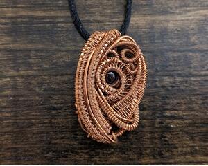 Wire wrapped and woven Copper swirly pendant with an Amethyst...