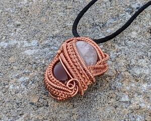 Rainbow Moonstone and Carnelian Copper wire woven pendant