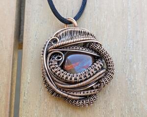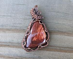 Copper Woven Red Jasper Pendant: Bold Heady Style