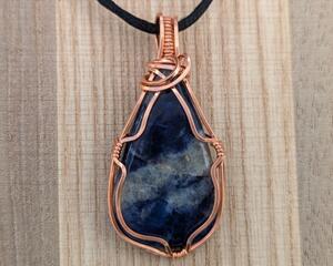 Gleaming Azure: Handcrafted Copper Wire-Wrapped Sodalite Pendant
